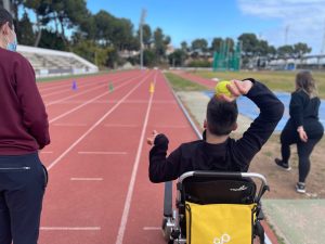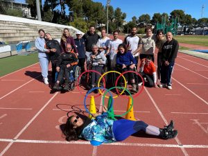 Cada miércoles, uno de nuestros grupos se desplaza hasta el polideportivo y allí espera cada día Ainhoa, con su sonrisa puesta y su simpatía, con esa manera de tratarnos que nos hace sentir tan bien y nos acercar al apasionante mundo del atletismo, con el mismo empeño que la llevó a catapultar a Miriam Martínez a la medalla de plata en los Juegos Paralímpicos de Tokio.