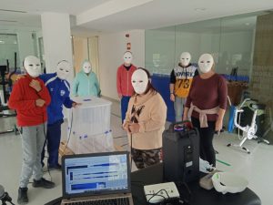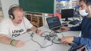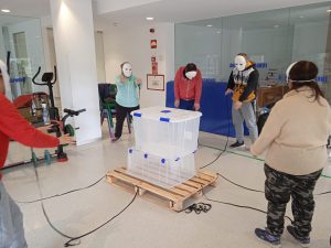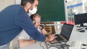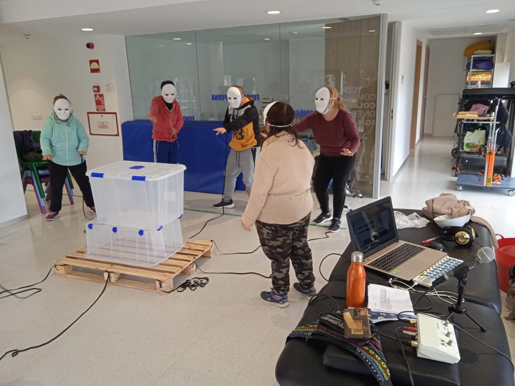Respecto al equipo técnico, tuvimos la suerte de contar con la ayuda de Vicent, miembro de grupo «Cuneta» que, casualmente, estaba realizando las prácticas de integración social en nuestro centro ocupacional y nos confeccionó, con gran entusiasmo, el audio para nuestra pieza.