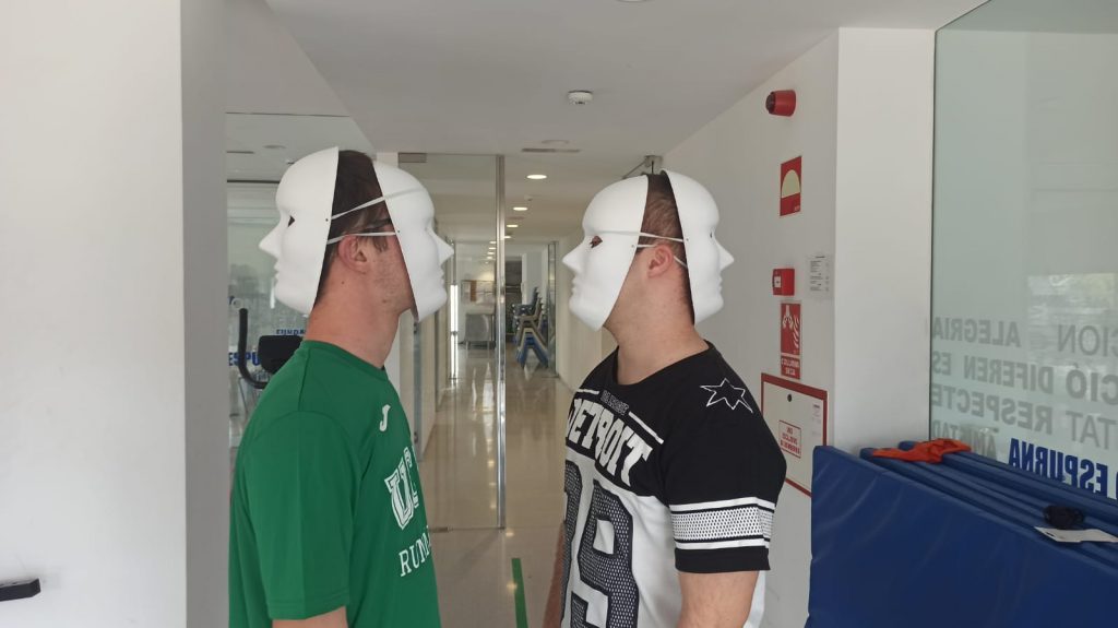 Tras esto, ya podemos deshacernos de las máscaras y autoreconocernos, volver a conectar con nosotros mismos, perdonarnos los errores del pasado mirando hacia el futuro. Seguidamente, aflorarán los conceptos de empatía y solidaridad. Tomaremos, pues, conciencia de la necesidad y el regalo que es tener gente a quien querer y que nos quiera, compañeros del camino en esta vida. Personas que, como nosotros, necesitan ayuda de vez en cuando. Tras abrazarnos para mostrarnos cariño y apoyo mutuo, nos tomamos la mano en un simbólico corro de esperanza y mirada hacia el futuro, a la vez que en el audio se escucha en bucle, casi como un mantra: «puedes contar conmigo, puedes contar conmigo, puedes contar conmigo…». Así finaliza el performance igual que comenzó, dotándolo de sentido y cerrando, de esta manera, toda la historia narrada.