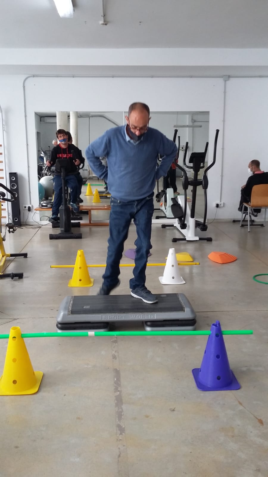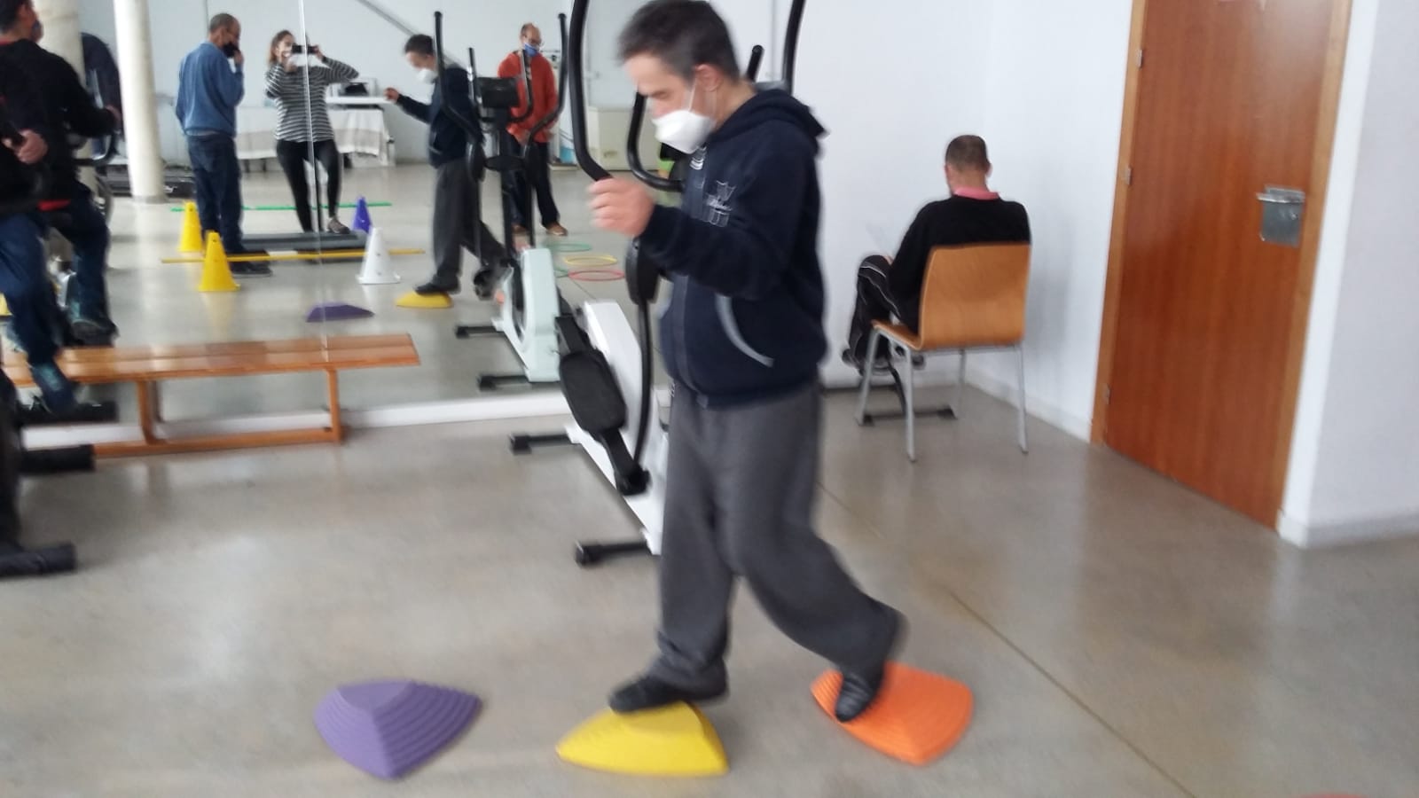 Poco a poco volvimos pudimos volver a las sesiones presenciales siguiendo las medidas sanitarias, por lo que tuvimos que adaptar una sala del edificio de la calle San Ramón para hacer fisioterapia en grupo, guardando bien la distancia. Hemos conseguido, que todos los usuarios tengan la oportunidad de seguir asistiendo a sus sesiones de fisioterapia.
