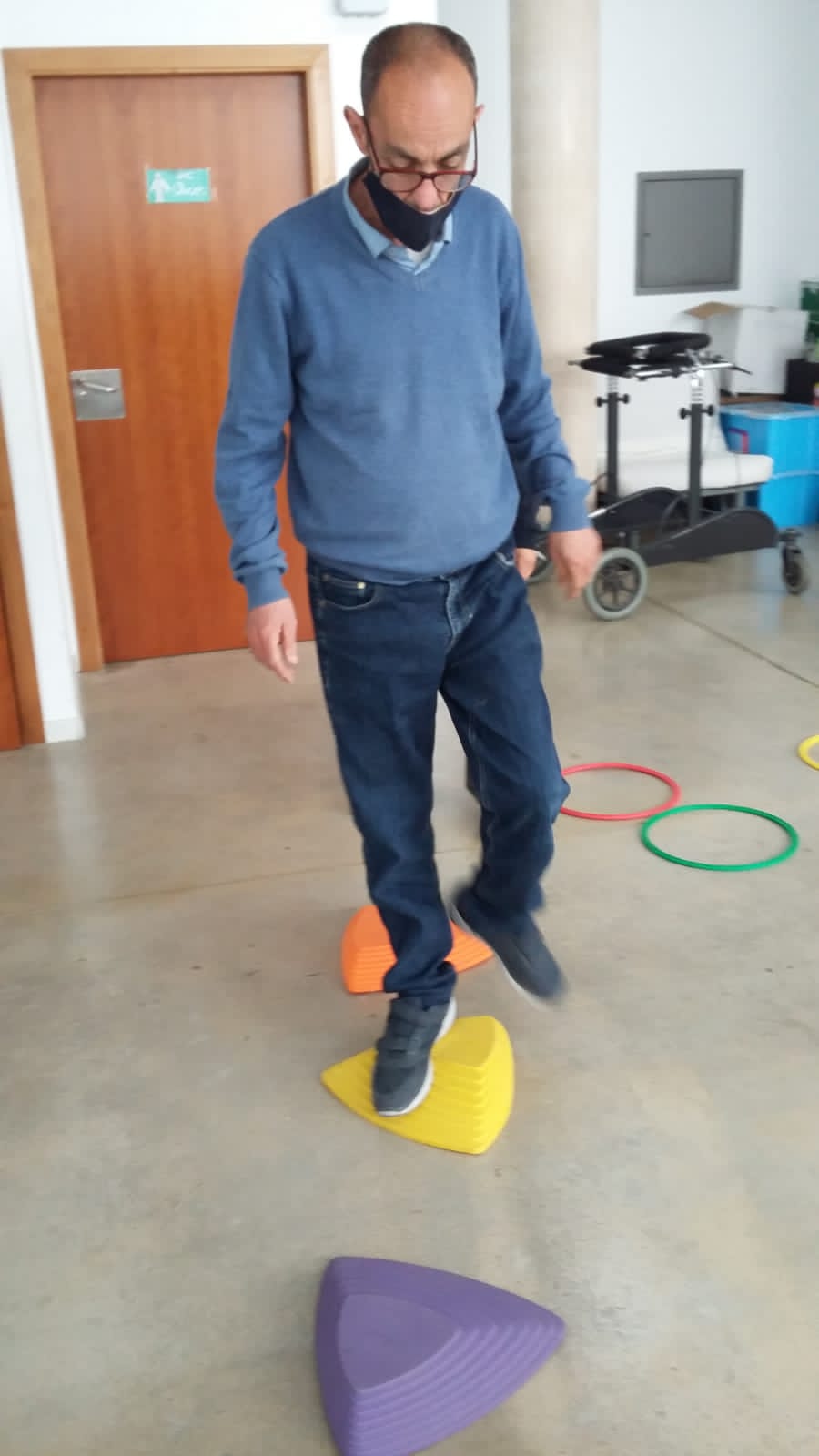 Este año en el área de fisioterapia, también hemos tenido que adaptarnos las nuevas circunstancias. Durante el confinamiento, acudimos a los domicilios para realizar las sesiones de rehabilitación con los usuarios lo requerían, les preparamos fichas de ejercicio terapéutico adaptadas a cada uno, para evitar hábitos sedentarios. Semanalmente contactábamos con ellos y sus familias mediante video-llamada para hacerles el seguimiento, resolviendo sus dudas, prestando apoyo, animando a quienes más les costaba cogerse a la rutina de hacer ejercicio diario y felicitando a aquellos que ya lo hacían a seguir así.Fueron unos meses complejos, de cambios y adaptaciones.