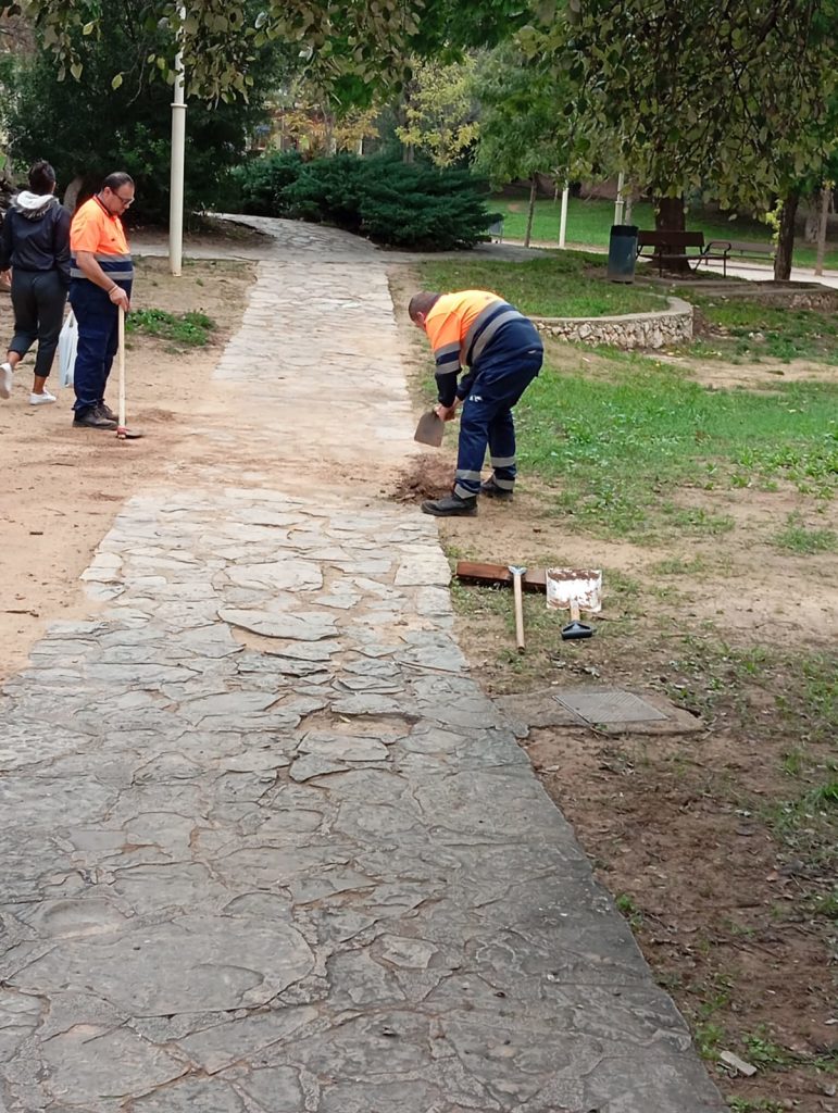 El equipo está formado por cuatro operarios llenos de ganas, guiados por un encargado que les apoya en todo momento. Con mucha dedicación, cuidan cada rincón de estas zonas verdes, recogiendo hojas, limpiando y manteniendo las plantas para que todos los vecinos puedan disfrutar de un entorno más bonito y saludable.