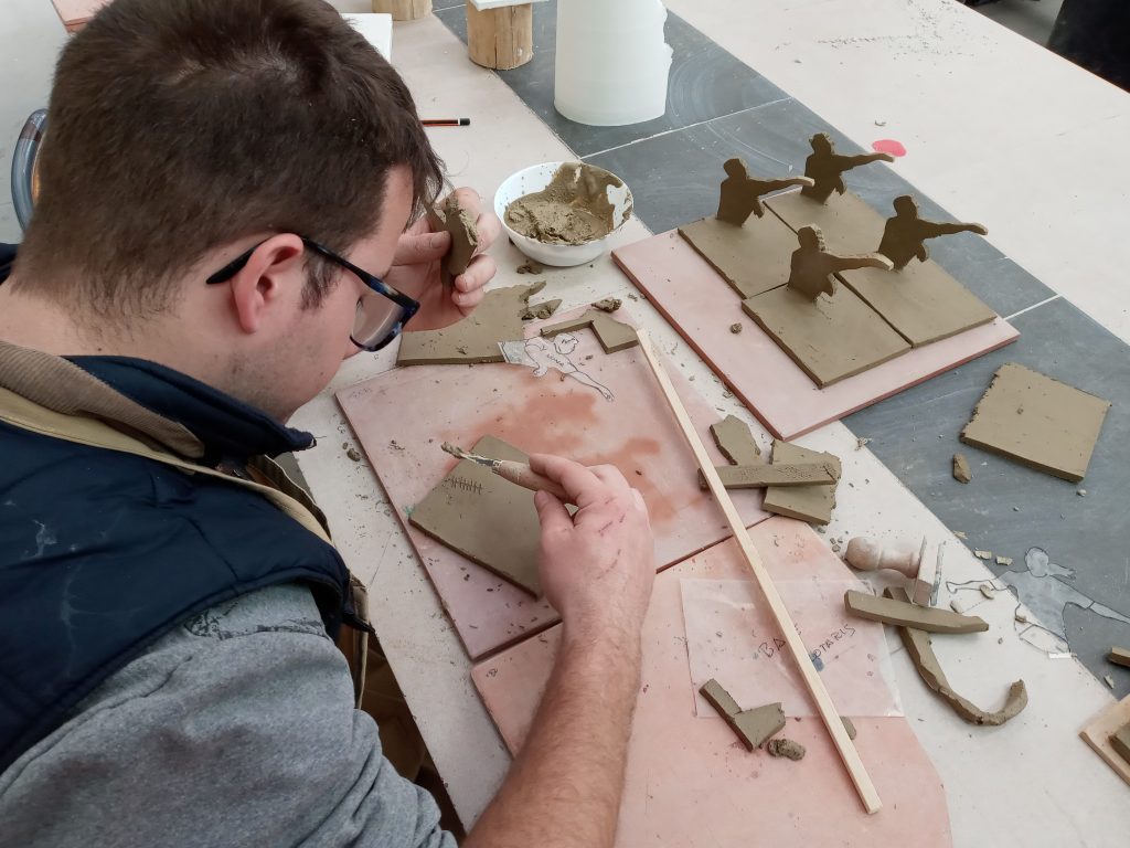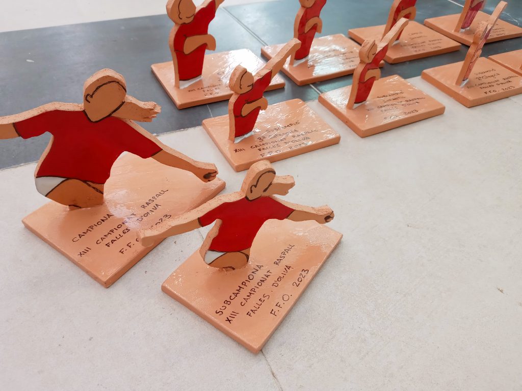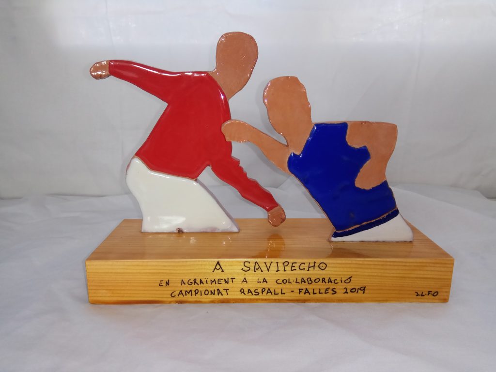Pues, en nuestros talleres de cerámica de la Fundació Espurna, tenemos la suerte y el gran privilegio de poder unir ambas disciplinas ya desde hace algunos años y, por lo tanto, disfrutar con nuestras actividades diarias, cada vez que recibimos algún encargo relacionado con nuestro juego de pilota, como son trofeos, agradecimientos, medallas, socarrats…