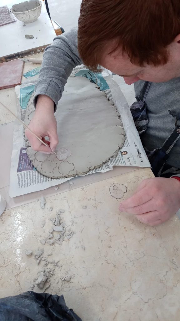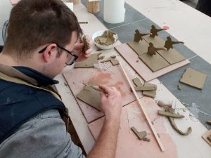 Así encaramos la realización del pedido, iniciando con algún esbozo y la posterior fabricación de plantillas, a partir de las cuales vamos creando los preciados trofeos por medio de planchas o cachos de barro que vamos modelando poco a poco.