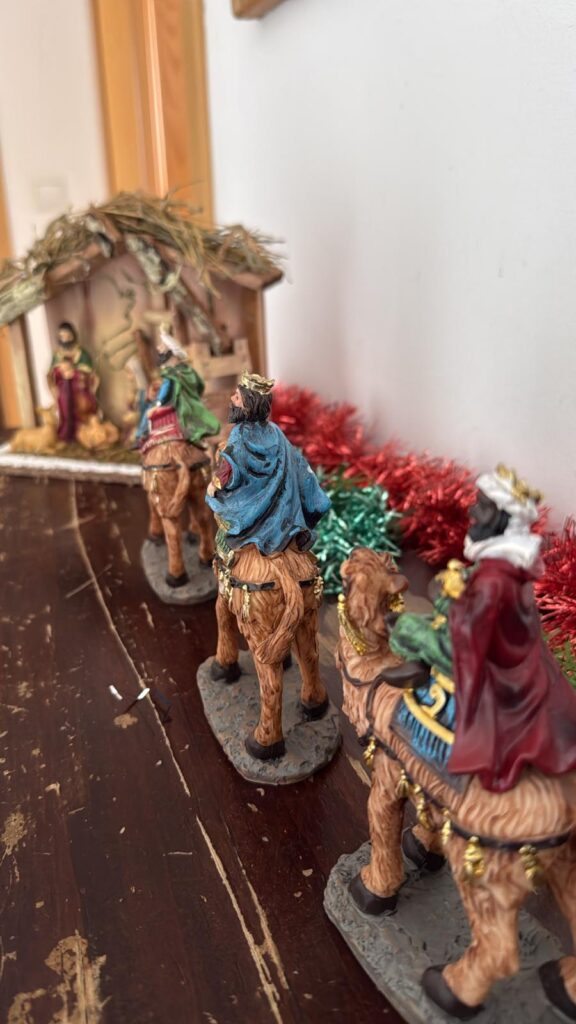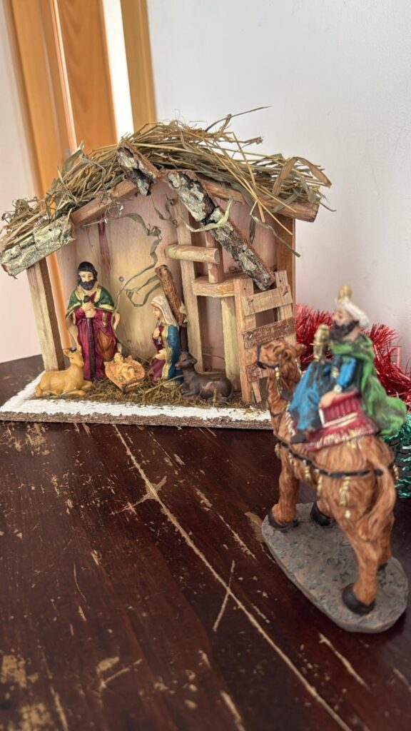 El Belén, nuestro ansiado pesebre, es nuestro punto de encuentro. Lo montamos con cuidado, con ilusión, poco a poco, como si entre todos fuéramos despertando su vida. Cada adorno encuentra su sitio, y mientras lo colocamos, siento que crece también nuestra alegría. Reímos cuando algún adorno se cae, cuando alguna luz no enciende a la primera, y nos ayudamos unos a otros, compartiendo cada instante. No importa que quede perfecto, importa que lo vivimos juntos. Y cuando llega el momento de colocar la estrella en lo más alto, todo se completa: mirarla brillar me hace sentir que nuestra ilusión también brilla, que cada risa, cada gesto y cada mano que ayudó a montarlo están reflejados en ella. Esa estrella es nuestra chispa más grande.