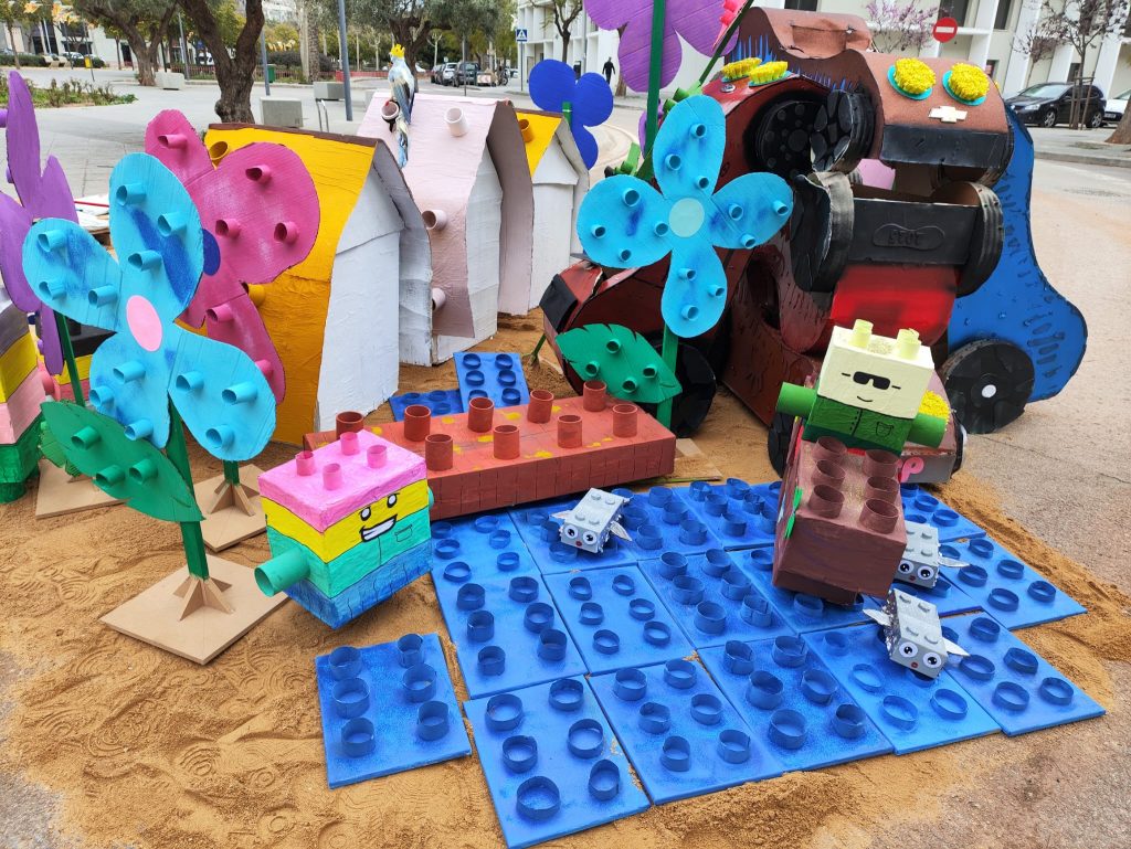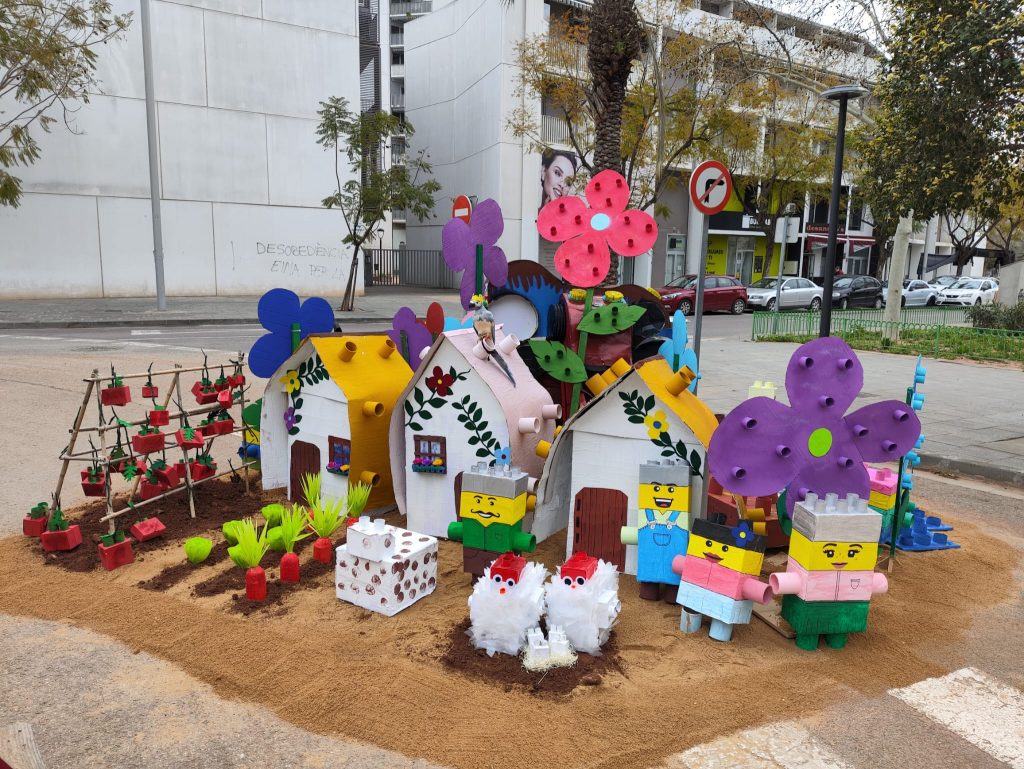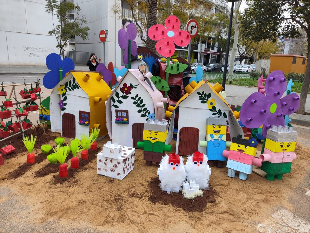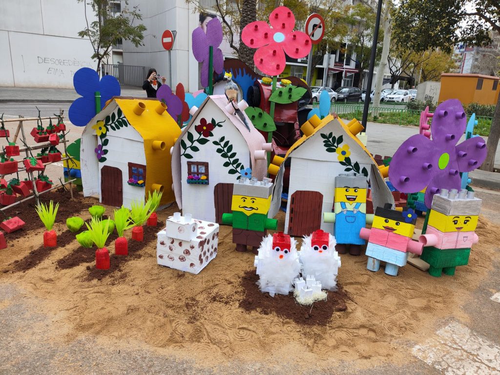 El ninot indultat elegido son unas gallinas construidas simulando ser simbólicamente piezas de lego, piezas de (re)construcción.