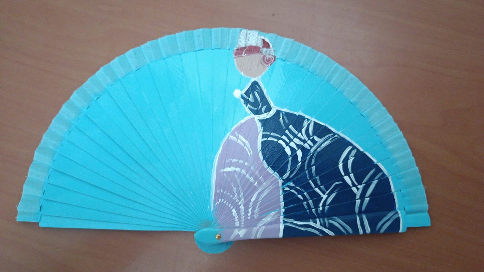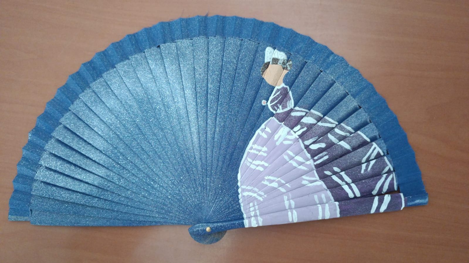 Abanico de madera y tela pintado a mano en nuestro taller de artesanía.