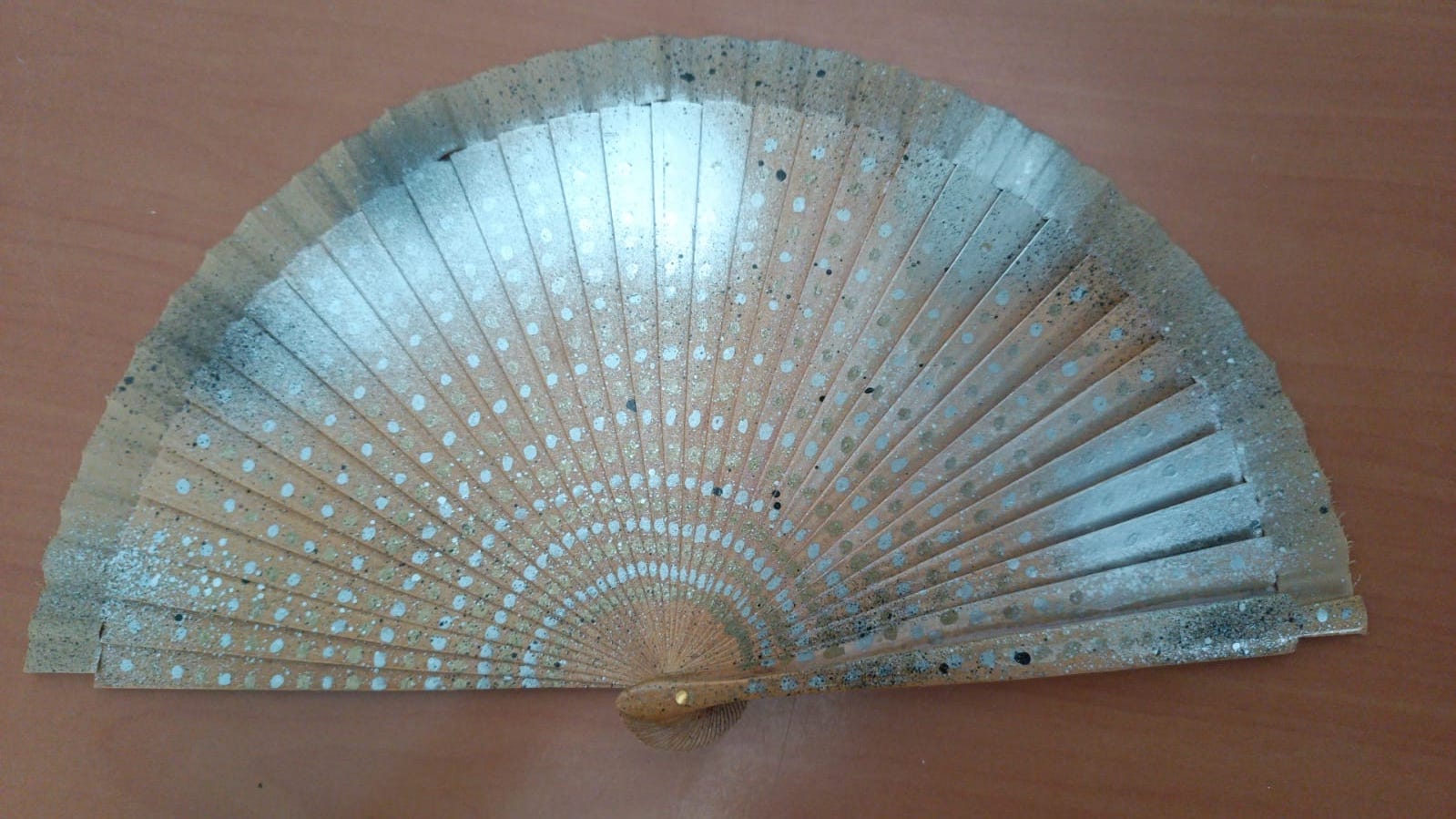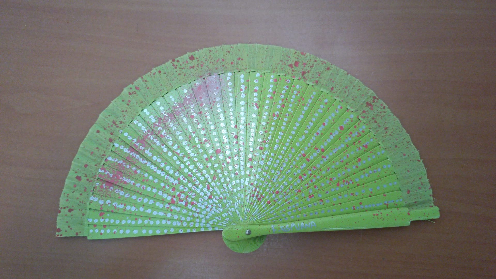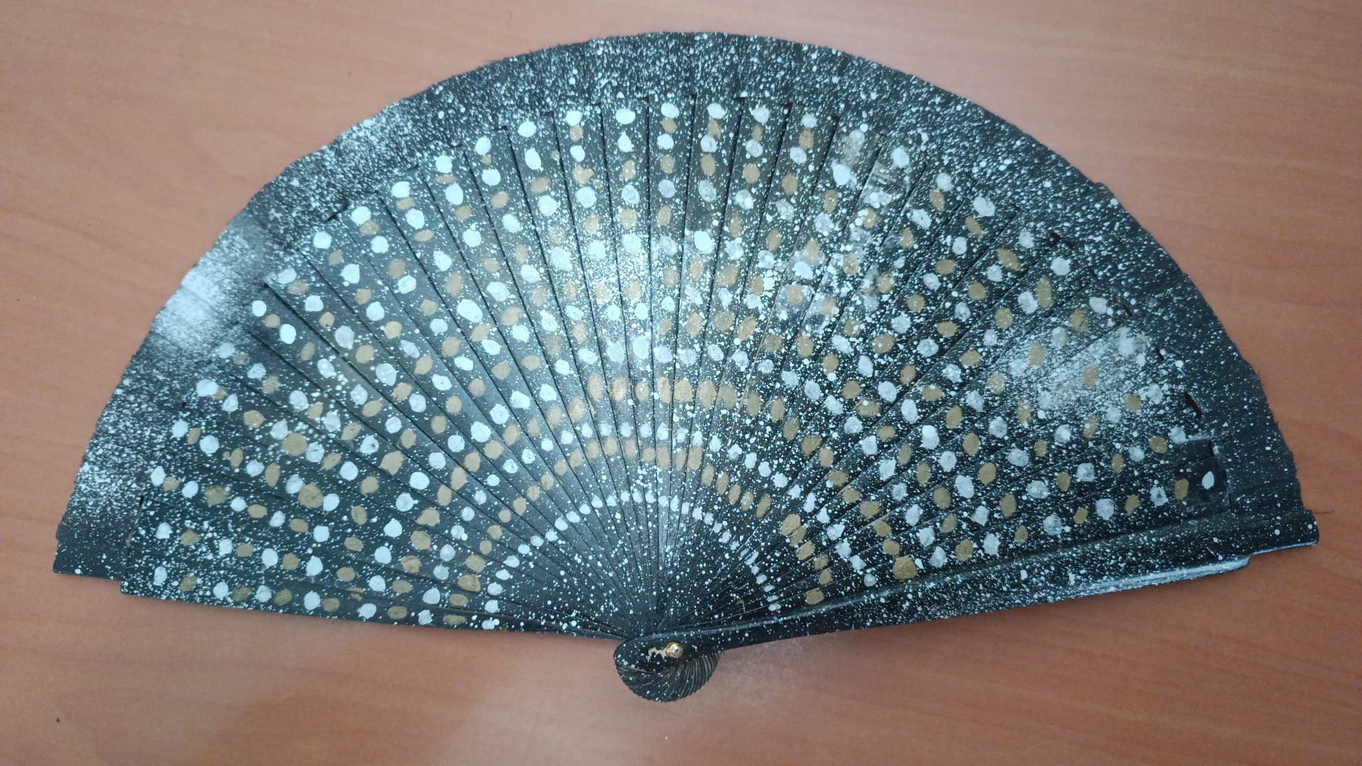 Abanico de madera y tela pintado a mano en nuestro taller de artesanía.