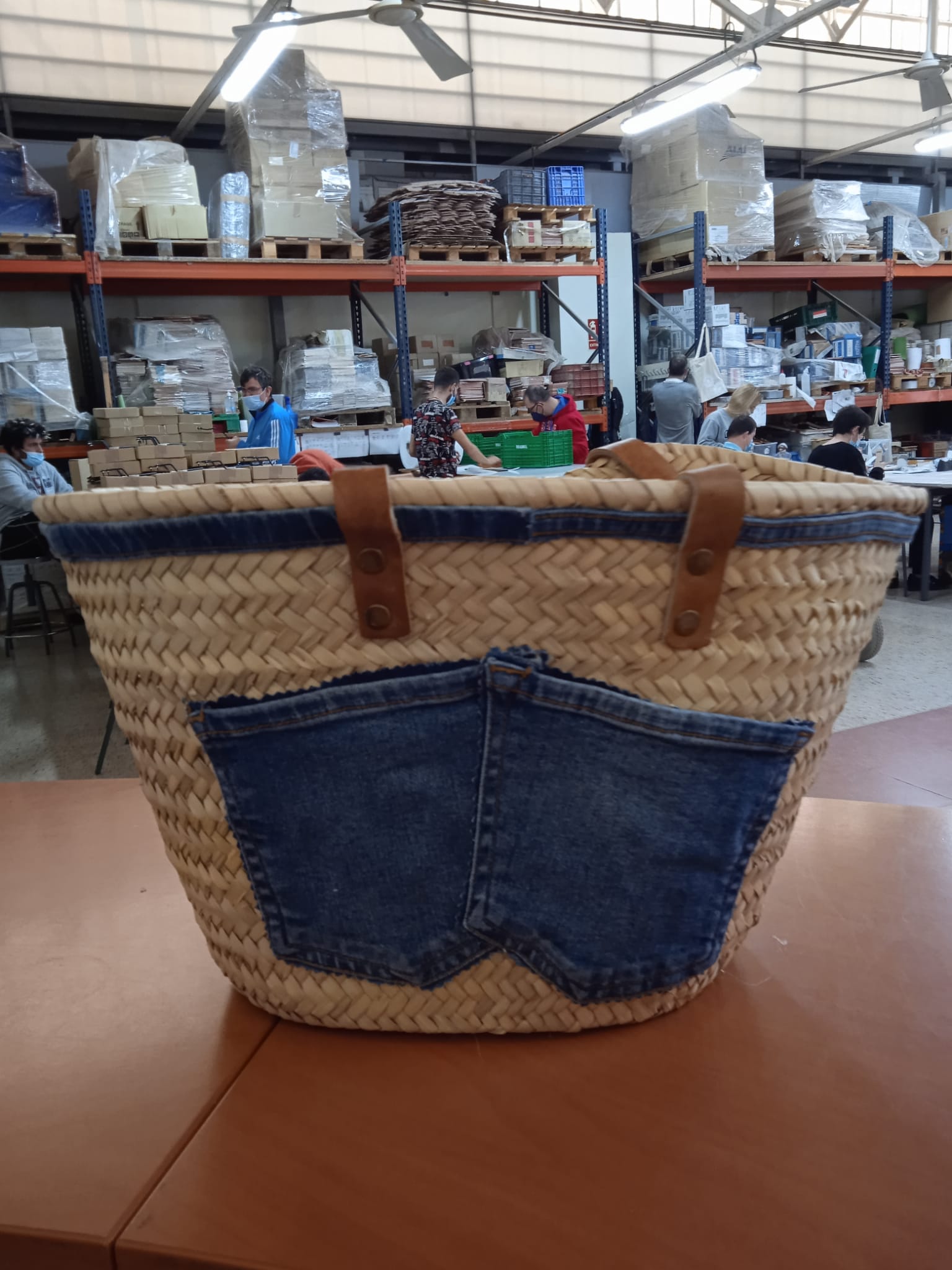Capazo mediano sin cierre y asa larga decorado en nuestro taller de artesanía.