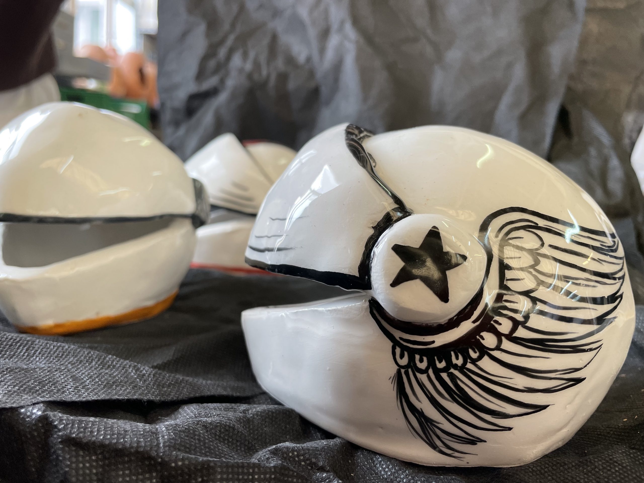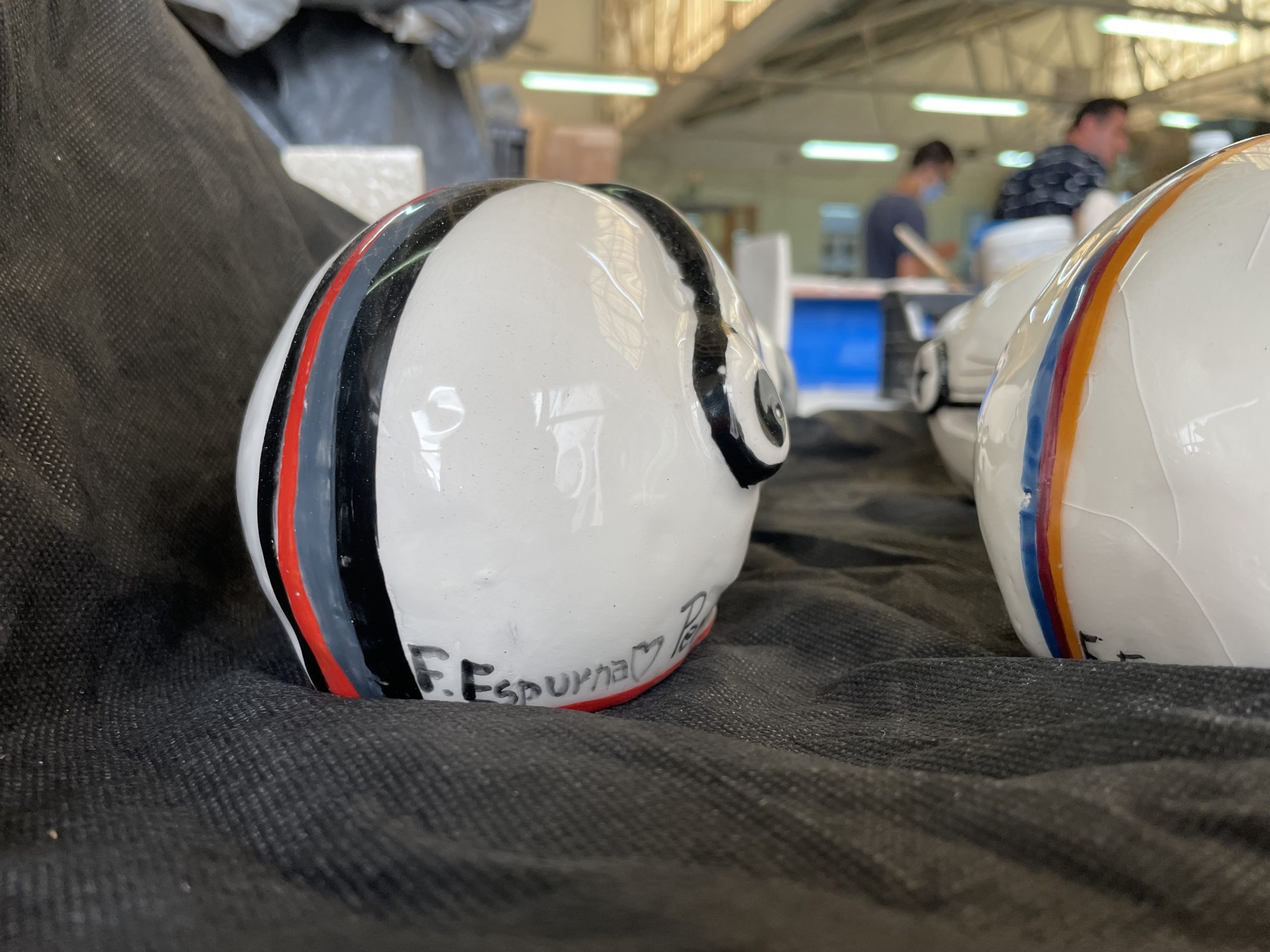 Casco de moto de cerámica con esmaltes. Personalizamos cada diseño como más te guste.