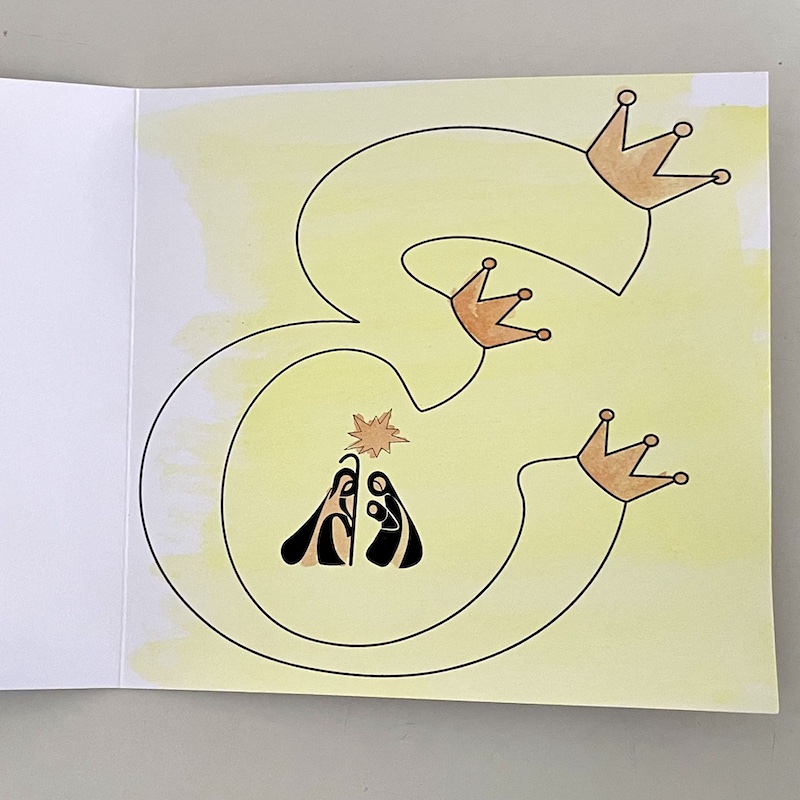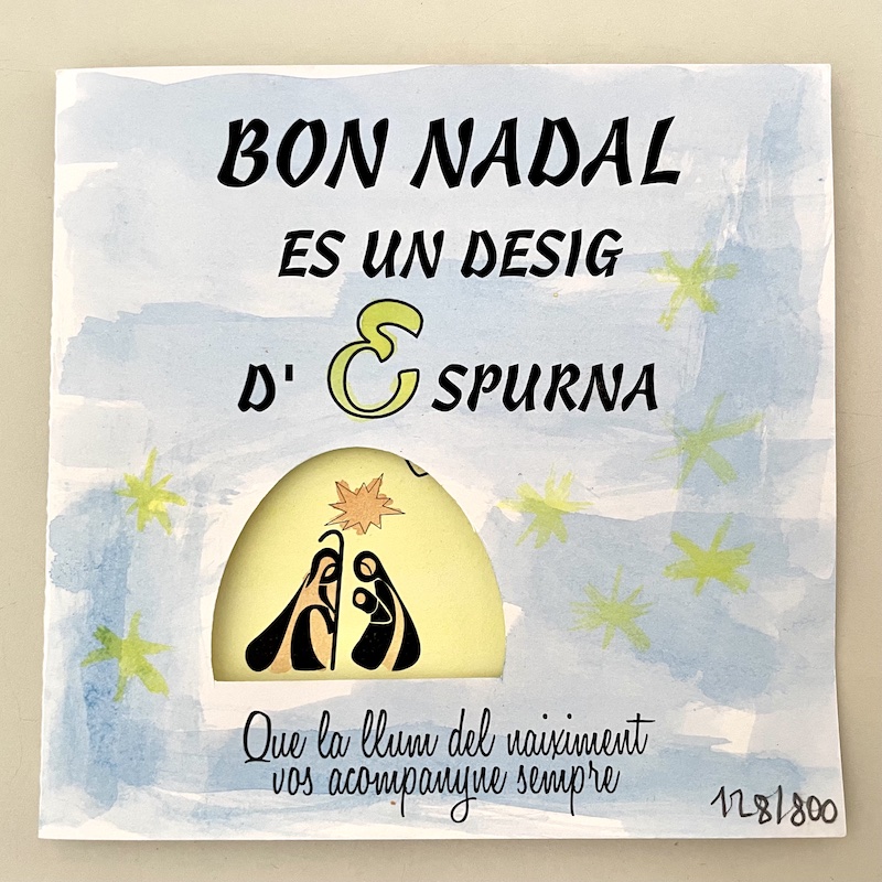 Felicitación de navidad con portal recortado en la portada para dejar ver el nacimiento del interior.