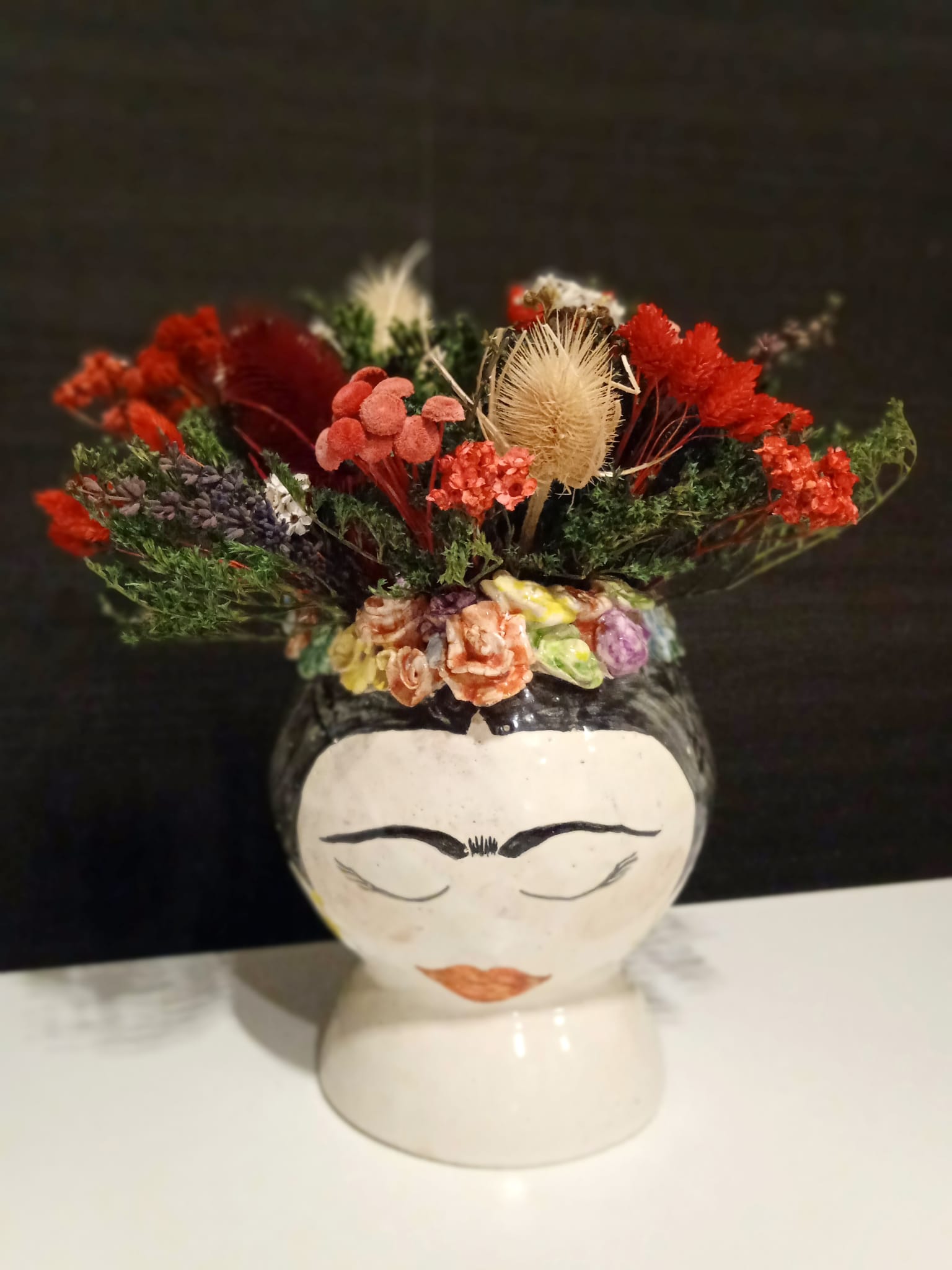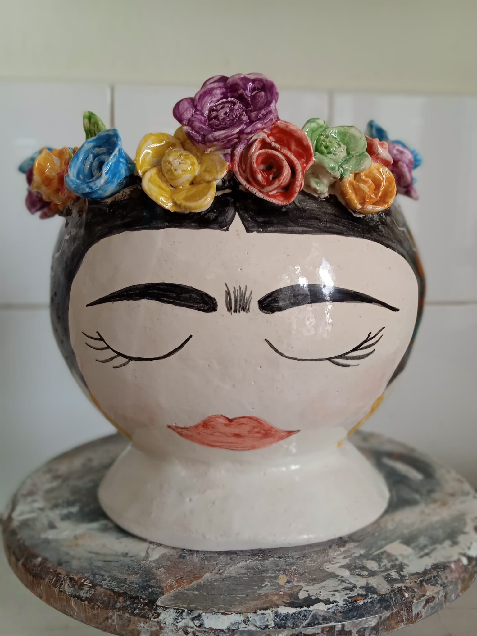 Jarrón de la colección Frida Kahlo, creado en cerámica y esmaltado en nuestros talleres de artesanía.