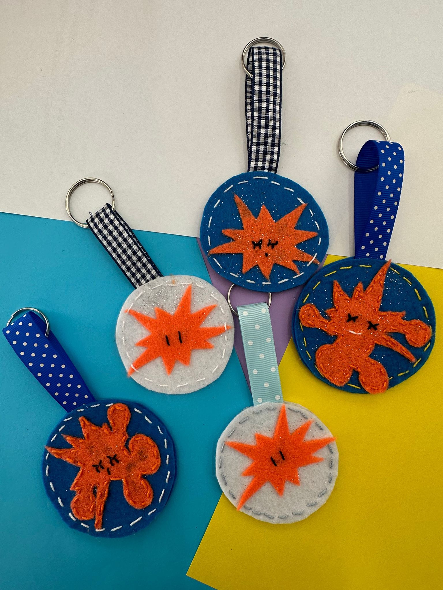 Llaveros con decoración Espurna. Hecho y decorado en nuestro taller de artesanía a mano.