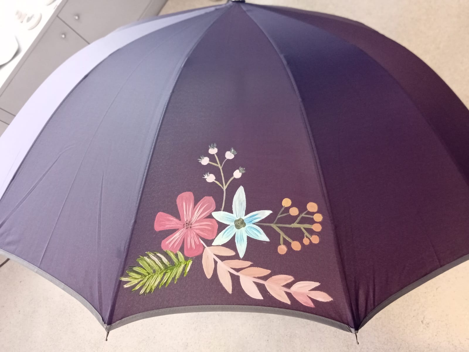 Paraguas pintado a mano con flores en el taller creativo de Fundació Espurna.