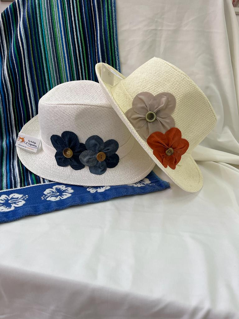 Sombreros con decoración de flores, hecho y decorado en nuestro taller de artesanía a mano.