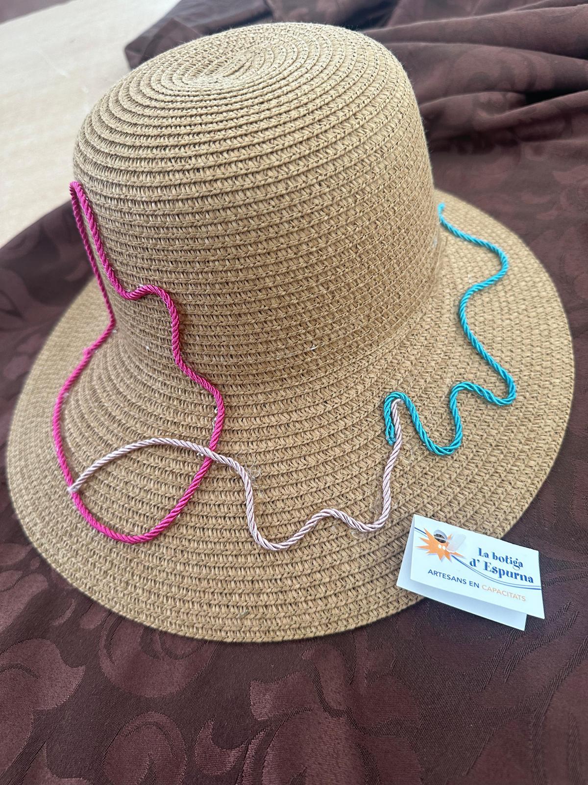 Sombrero con lazos de colores y formas variadas, hecho y decorado en nuestro taller de artesanía a mano.