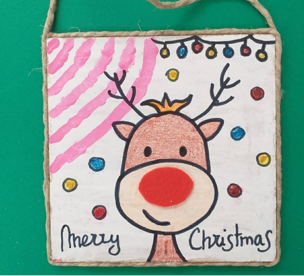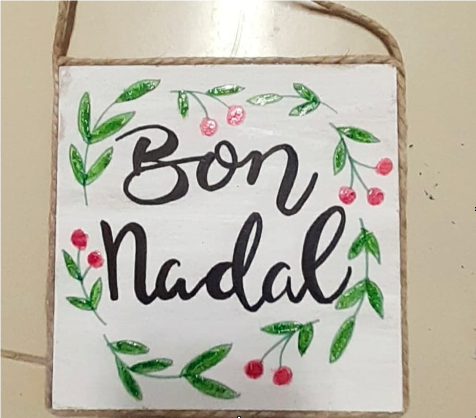 Tablilla decorativa pintada a mano para colgar, realizada en el taller de creatividad. Totalmente personalizable.