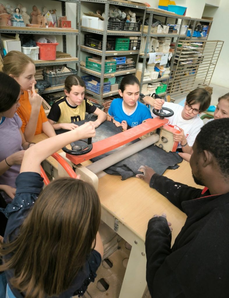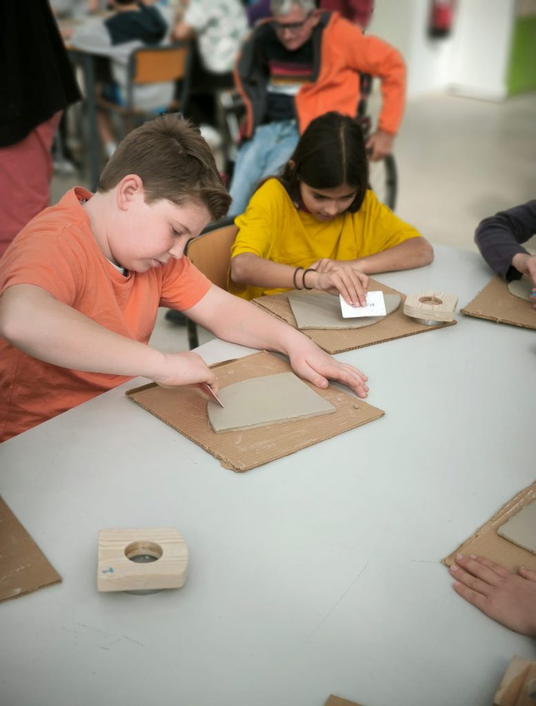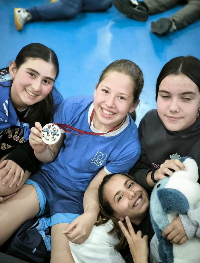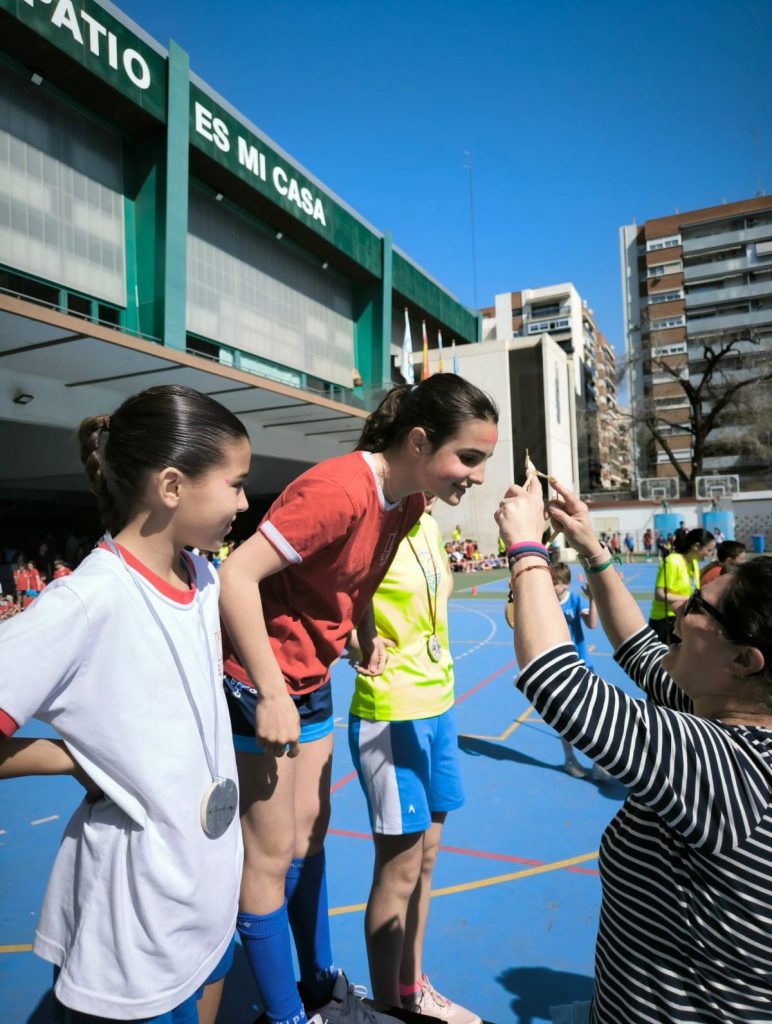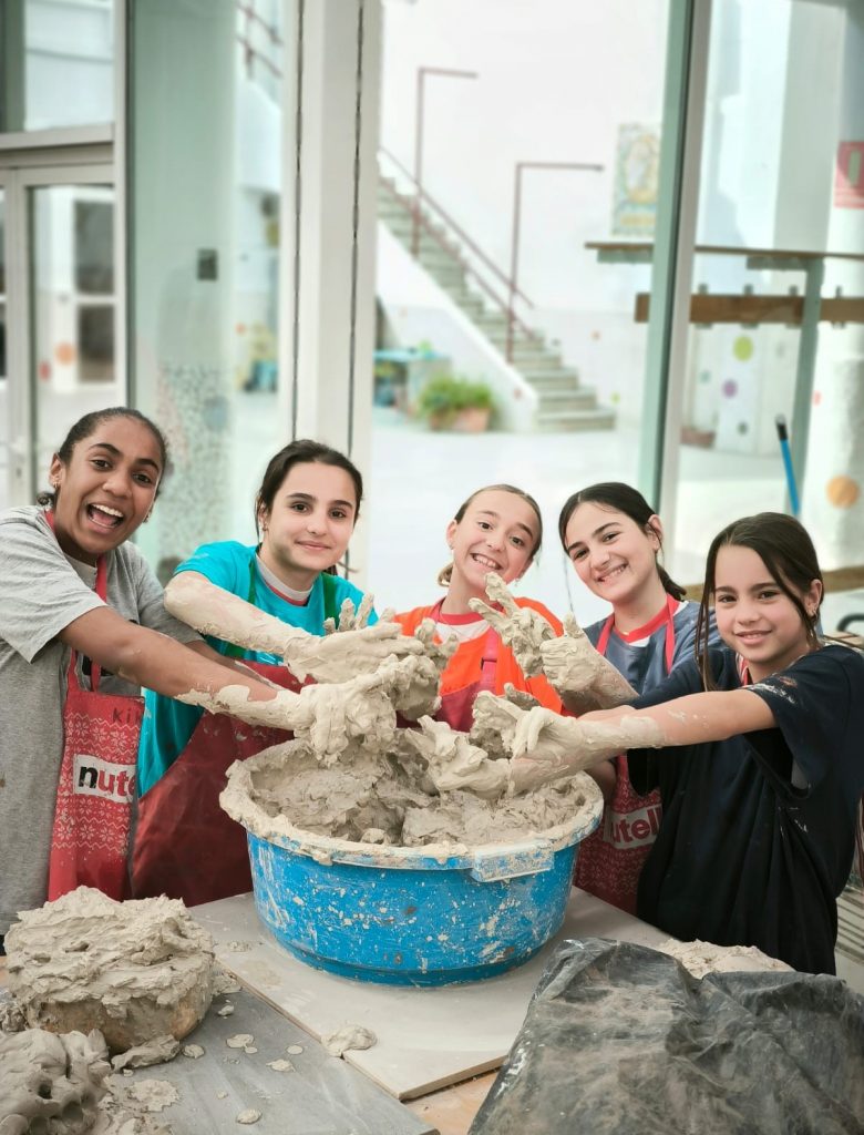 Nos enseñaron a hacer medallas, ¡sí, las medallas de las Olimpiadas Marianistas de Valencia! Primero desayunamos fuera y luego entramos al taller. Amasamos arcilla, la aplanamos con una máquina y después hicimos la forma de la medalla con un molde redondo. Encima pusimos un dibujo de dos muñecos vestidos con ropa de deporte.