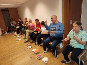 Después de las merecidas vacaciones de agosto, llego septiembre y con él, el primer contacto dentro de la nueva normalidad en el centro ocupacional, donde nos deshicimos de las «famosas burbujas» del post confinamiento, aunque vamos con mucho cuidado siempre, ya nos podemos juntar con todo/as los/as compañeros/as que es lo que más echamos de menos y así poder retomar todos los talleres y actividades que tantos nos gustan.